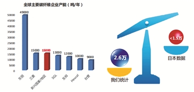 “从企业数量来讲,中国碳纤维企业的数量占到全球的67%,我们叫‘数量强国’;从需求来讲,中国在全球也是最好的;但是我们的产能在全球来看非常小,占比大概8%—9%。”