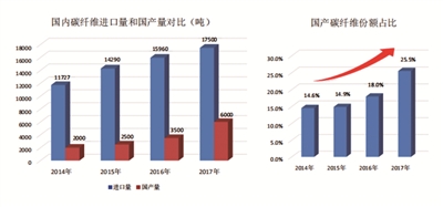 | 国产碳纤维份额占比逐年缓慢上升 |