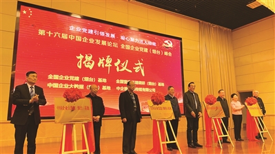 会上,山东省、烟台市、中国企业联合会、《中国企业报》集团有关领导为全国企业党建(烟台)基地、全国营商环境调研(烟台)基地、中国企业大数据(烟台)基地,和《中国企业报》集团在全国设立的首家中企报国际传媒有限公司揭牌。