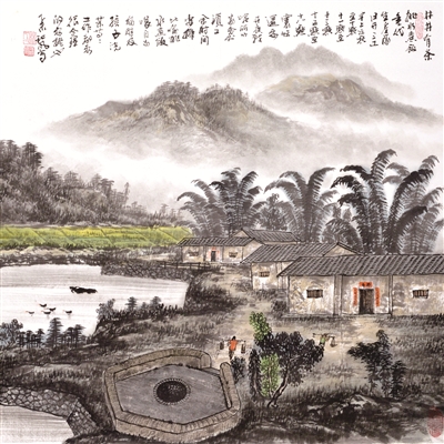 林和风长年效法历代名家书画技艺,在不惑之年独创出“和风三养”书法、“和风雨点皴”国画技法,及其为宣扬地方文化的“粤西风情”系列国画作品。