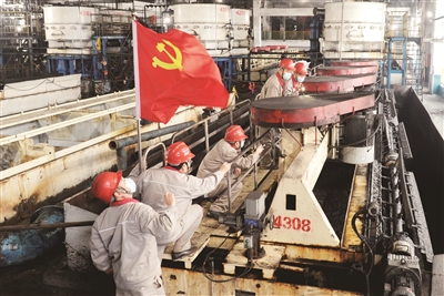 | 3月6日,淮北矿业集团临涣选煤厂党员突击队员正在生产现场进行安全隐患排查。 陈磊 石启元/摄 |