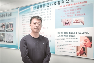 2月5日,国家卫健委发布《新型冠状病毒感染的肺炎诊疗方案(第五版)》,明确含氯消毒剂可灭新型冠状病毒。这让久益康(北京)医药科技有限公司(以下简称“久益康”)的全体员工十分欣慰和骄傲,因为他们用心血研发的速洁芬次氯酸消毒液符合标准,能够为全民抗疫做出自己的贡献,多年努力终于心愿得偿。用久益康(北京)医药科技有限公司董事长马杰的话来说:“这比我们的销售额增长多少都满足。”