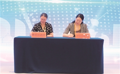 | 江西省赣州市赣县区人民政府副区长谭晓芳(左)与《中国企业报》集团总裁助理孙宝静(右)签订招商引资战略合作协议 |