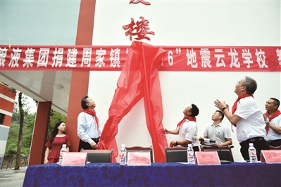 | 五粮液集团党委书记、董事长李曙光为捐建的云龙学校教学楼揭牌 |