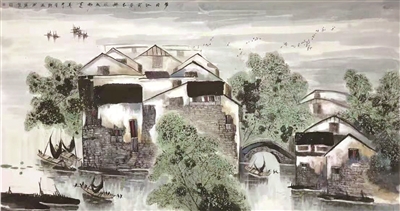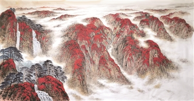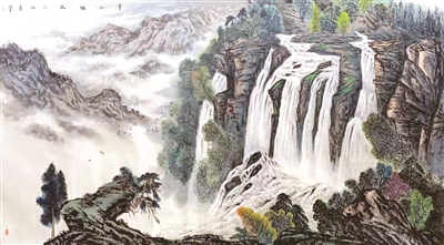 与中国传统山水画相比,姜宁的山水更富有现代山水的气质特征,其山石刻画精细,皴法鲜明,质感突出,画面逼真,植被多以浓郁翠绿的颜色来衬托,水有倒影,具有很强的还原真实感。姜宁的画,让我们看到了他内心的澄澈和精神领域内的活泼飞扬,他的这份对美的追求使得他的绘画艺术达到了很高的境界。
