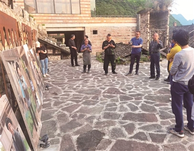 半个月的劳作,韩玉臣完成写生17幅,其中4幅风景是利用早上时间画的。韩玉臣如此勤奋,如此高产,令洪江的艺术家十分钦佩。6日傍晚,大家聚集在李向明“土语南居”楼顶平台上,请韩玉臣介绍了自己的艺术历程和创作经验。