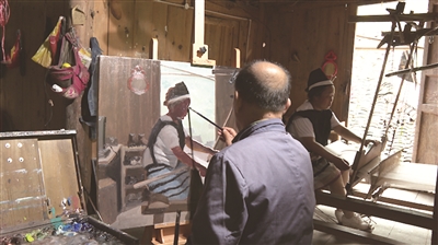 水族是贵州的主要少数民族之一,保留其民族特色较好的山江寨,距洪江村只有十几分钟车程,为了如实刻画水族人的风貌,韩玉臣先后在那里待了5天,画了4幅写生。