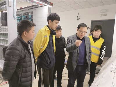 | 周宇经理在嘉兴站新建信号楼施工现场前给年轻技术员现场讲解信号电路原理 |