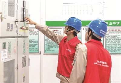 6月23日,国网晋江市供电公司技术人员到2021年中考考点平山中学,对学校的配电房设备和供电情况进行检查。