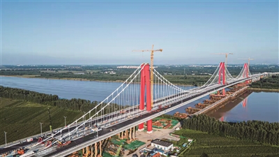 山东济南凤凰黄河大桥是世界最大跨度三塔自锚式悬索桥,由济南城市建设集团有限公司全资子公司济南城凤公路工程有限公司负责建设及运维,中交二航局凤凰路黄河大桥项目部负责具体承建。工程在投标承诺工期的基础上严控管理,将工期再次优化,预计将于今年10月通车。