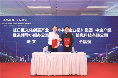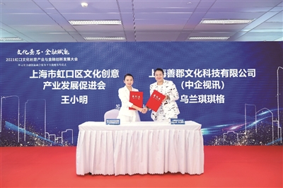 借助北外滩金融功能集聚优势,虹口逐渐营造出具有特色的文化金融发展环境,加快“金融+文创”双引擎发展,吸引了越来越多的企业前来投资兴业。此次大会现场就有一批企业集中签约,包括虹口区文创办与《中国企业报》集团中企产经(北京)信息科技有限公司战略签约;虹口区文促会与上海善郡文化科技有限公司(中企视讯)、浙江舜熙影业、上海葛苑文化、国嘉城投(北京)控股集团有限公司等签约。