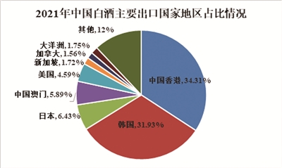 | 2021年中国白酒主要出口国家地区占比情况 (数据来源:中国海关) |