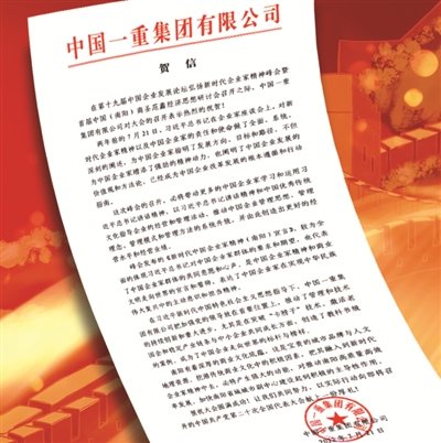 7月21日,第十九届中国企业发展论坛弘扬新时代企业家精神峰会暨首届中国(南阳)商圣范蠡经济思想研讨会在河南省南阳市举行。中国一重集团有限公司向大会发来贺信。
