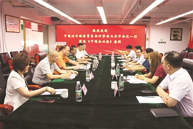 8月11日下午,中国对外经济贸易会计学会会长、中国对外经济贸易统计学会名誉会长王亚平,会计学会副会长、统计学会秘书长姚卫东等一行走访了《中国企业报》集团,与《中国企业报》集团董事长、社长、总裁吴昀国,《中国企业报》集团副社长徐金挺等进行了深入而广泛的研讨交流。双方共同探讨了企业融资、企业国际化、企业合规建设等方面的合作,达成了长远战略合作的意向,以及在九月初的服贸会上共同主办“2022国际金融创新与合作论坛”的共识,签署了合作框架协议。