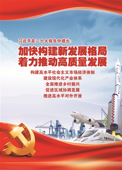 习近平在二十大报告中提出,必须完整、准确、全面贯彻新发展理念,坚持社会主义市场经济改革方向,坚持高水平对外开放,加快构建以国内大循环为主体、国内国际双循环相互促进的新发展格局。