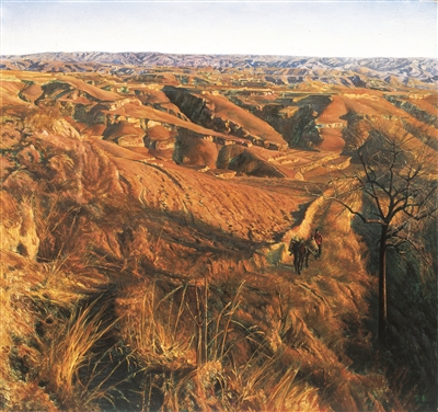 | 《洒满阳光的陕北》 100×95cm 布面油画 1995年 获1995年中国风景油画展金奖 |