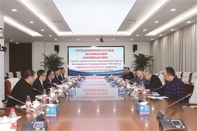 代表团在京期间,访问了中国农业科学院。包括观看中国农业科技成果展;考察国家大豆产业技术研发中心;与中国农业科学院国际合作局举行座谈会,双方就开展农业科技合作、扩大两国农业产业合作的深度和广度,尤其是深入开展中俄两国寒地农业科技和产业合作、探讨中俄两国种养一体化、跨境农业产业链金融链的深度合作、推动两国农产品贸易便利化等议题进行广泛和深入的探讨。