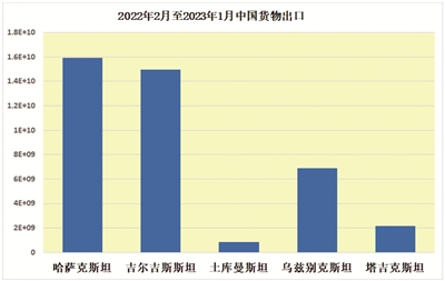 1)2022年2月至2023年1月中国向中亚五国各自货物出口