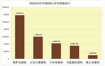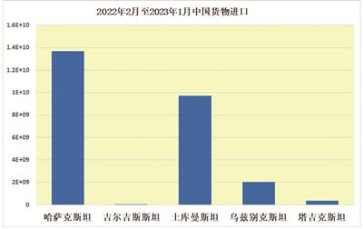 1)2022年2月至2023年1月中国从中亚五国各自货物进口