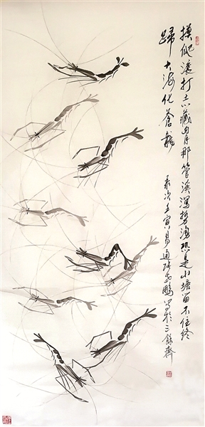 1961年被许麟庐先生收为入室弟子,是齐白石的再传弟子。1963年,拜江南三铁之一的钱瘦铁先生为师学习篆刻。1987年,他的恩师许麟庐先生赐名并为其题写了《三余斋》为画室之名。其作品得天地之灵气,典雅清新、疏野自然,呈现出“平安祥和”“天人合一”的艺术之美。尤其是虾,千姿百态、栩栩如生、出神入化、呼之欲出。有“虾神”之称,书、画、刻“三绝”之誉,学齐而非齐。