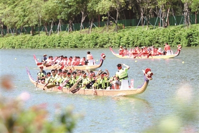 6月20日,大沙河畔清风徐徐,“龙腾盛世”彩旗招展。北新建材龙牌集团“龙行天下·佳节安康”龙舟赛在深圳大沙河生态长廊沸腾开赛。由北新建材龙牌集团、行业协会、战略合作大客户、经销商组成的6只参赛队伍激荡大沙河,弘扬中华传统文化、展示中国品牌的魅力。