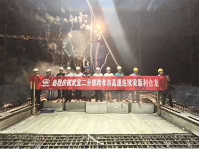 中铁四局沪渝蓉高铁武宜段跨高速 连续梁顺利合龙