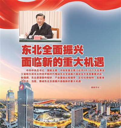 新华社哈尔滨9月9日电 中共中央总书记、国家主席、中央军委主席习近平7日下午在黑龙江省哈尔滨市主持召开新时代推动东北全面振兴座谈会并发表重要讲话。他强调,新时代新征程推动东北全面振兴,要贯彻落实党的二十大关于推动东北全面振兴实现新突破的部署,完整准确全面贯彻新发展理念,牢牢把握东北在维护国家“五大安全”中的重要使命,牢牢把握高质量发展这个首要任务和构建新发展格局这个战略任务,统筹发展和安全,坚持目标导向和问题导向相结合,坚持锻长板、补短板相结合,坚持加大支持力度和激发内生动力相结合,咬定目标不放松,敢闯敢干加实干,努力走出一条高质量发展、可持续振兴的新路子,奋力谱写东北全面振兴新篇章。