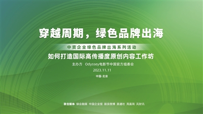11月11日,Odyssey电影节中国官方组委会在北京举办“中资企业品牌出海系列活动-如何打造国际高传播度原创内容工作坊”活动,Odyssey电影节主办方负责人与行业专家、企业代表、导演及制作人、新闻传媒代表共同探讨中国企业如何做好绿色品牌出海,打造具有国际高传播度的优质内容,助力企业提升国际绿色品牌影响力。