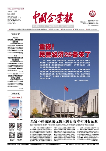 版权声明:《中国企业报》刊发的所有作品,版权均属于中国企业报社。未经报社书面授权,任何单位及个人不得将《中国企业报》刊发的内容用于商业用途。如进行转载、摘编,必须在报社书面授权范围内使用,并注明作品来源"中国企业报"以及相关作者信息。