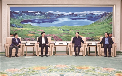 | 2021年12月17日,吉林省委书记景俊海,时任吉林省委副书记、省长韩俊在长春会见振兴吉林战略联盟、北京吉林企业商会考察团。 |