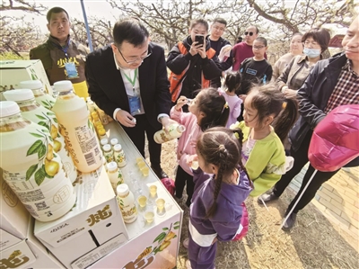 | 游客在百年梨园品尝小洋人炖梨饮品 |