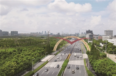 | 这是位于上海外高桥保税区的中国(上海)自由贸易试验区的标志“海鸥门”(2023年8月1日摄,无人机照片)。 新华社记者 方喆/摄 |