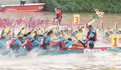 | “龙腾四海 鬱立潮头”龙舟邀请赛在南流江激情开赛 陈旭庆/摄 |