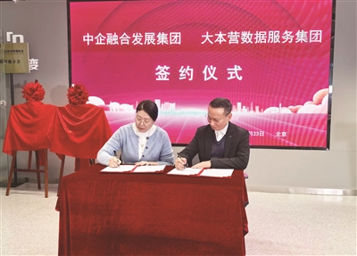 | 中企融合发展集团有限公司董事长孙宝静与大本营数据服务集团股份有限公司副总裁吴金林代表双方签署合作协议 |