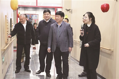 | 《中国企业报》集团执行副总裁付强、山东省人民政府原副秘书长张建德、中国人民大学法学院教授王立君参观鑫琦中医康养院。 |