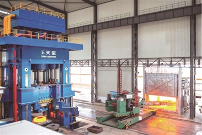 戴上安全帽,《中国企业报》记者跟随天宝集团生产副总樊璟赟步入锻造车间上方的参观通道,这里的热浪与室外的寒冷形成鲜明对比。透过通道上的窗户向下望去,银白色的机械臂正从天然气炉中取出被“燃”至通红的钢坯,缓缓送入蓝色的万吨位油压机。在操控室内,穿着蓝色工作服的师傅全神贯注地观察着机器的工作情况,同时紧盯着仪表盘并熟练地操控着操纵杆。10000吨油压机及智能机器设备不停地在车间运转,金属碰撞声与设备的嗡鸣声交织在一起,仿佛奏响了法兰新春“开门红”的序曲。