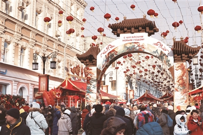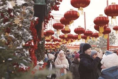 乙巳蛇年,热闹的节庆活动不仅在国内各地上演,我们的近邻俄罗斯也在为庆祝中国新春而忙碌。今年,中俄两国确立举办的2024—2025中俄文化年已进入第二个年头,根据文旅部门公开的信息,2025年1月28日起,“莫斯科中国新年”庆祝活动再次盛大开启,在童话般的莫斯科街头,当地居民和游客领略了丰富多彩的中国传统文化,一系列精彩纷呈的活动与美食品鉴也轮番登场。1月16日,俄罗斯外交部发言人扎哈罗娃在例行新闻发布会上,用字正腔圆的中文说:“邀请大家来莫斯科过年,结交新朋友!”