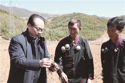 | 全国人大代表耿福能在凉山州布拖县指导农民附子种植 |