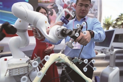 走进元化智能科技的展位,这里正在演示一场精准的膝关节置换手术,“主刀医生”竟是一台机器人。在场客商注视着机械臂的每个动作,但很显然,这位“医生”不会有“颤抖的手”。“机器人做膝关节置换、髋关节置换手术会非常精准,误差能控制在0.5毫米以内,大大地减少了病人的出血量,创伤小、恢复快,降低了术后后遗症风险。”元化智能科技(深圳) 有限公司董事长兼总经理孟李艾俐介绍。