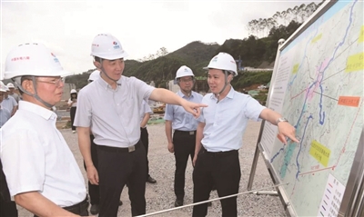 | 2024年4月18日,玉林市委书记王琛(左二)在龙云灌区工程建设现场就全市水网建设情况进行调研。 |