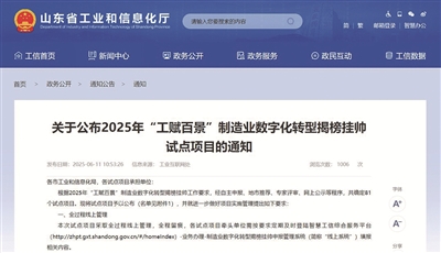 6月11日,山东省工业和信息化厅发布2025年“工赋百景”制造业数字化转型揭榜挂帅试点项目名单,滨化集团股份有限公司及山东联化新材料有限责任公司(滨化集团下属子公司)成功入选。