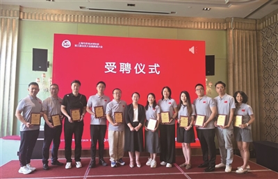| 上海市体育总会秘书长章璐(中)为上海市旱地冰球协会第三届理事会秘书长、副会长颁发任职证书 |