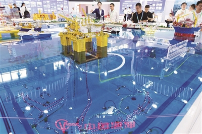 | 7月16日在清洁能源链展区拍摄的中国海油产业集群数智沙盘。 |