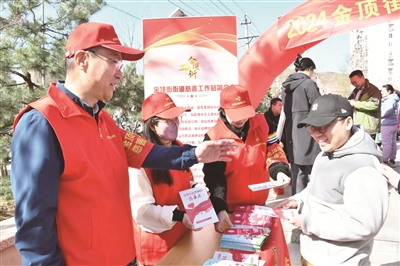 | 2024年3月5日,张金春在街道社区进行慈善法和捐赠法的宣传活动。 |