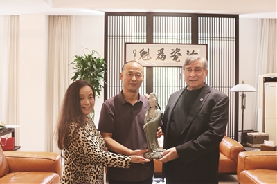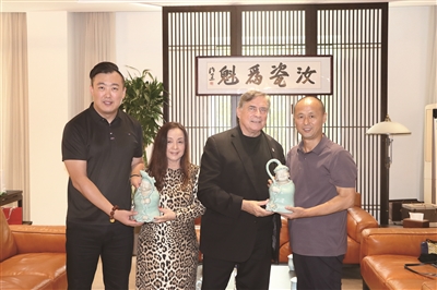 2025年8月1日,美中航空遗产基金会主席杰弗里·格林携夫人凯瑟琳率代表团专程拜访平顶山汝瓷研究会会长李浩中。双方围绕以“飞虎队精神”为主题的艺术创作、汝瓷文化国际推广及中美民间友谊深化等议题展开深度对话,共绘文化合作新蓝图。