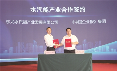 | 中国电子节能技术协会副理事长黄国和(右)与《中国企业报》集团副总裁刘海洋代表双方单位签约 |