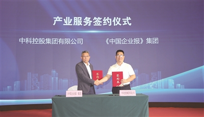 | 中科控股集团有限公司常务副总经理马璐(右)与《中国企业报》集团常务副总裁左振乾代表双方单位签约 |