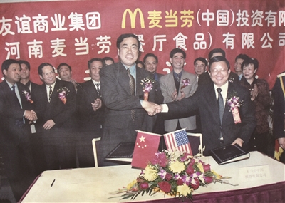 | 刘继臣代表郑州友谊商业集团与麦当劳(中国)投资有限公司签约 |