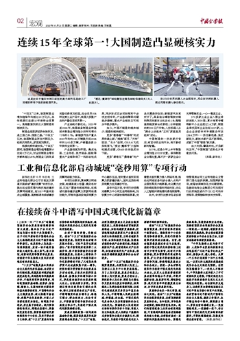 “十四五”以来,我国制造业增加值每年均超过30万亿元,总体规模已连续15年保持全球第一。亮眼数据折射出大国制造的硬核实力。