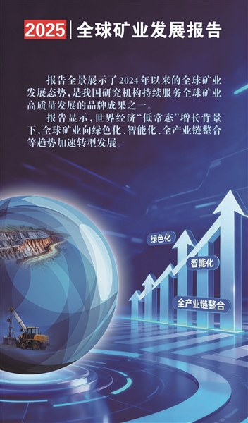 中国地质调查局不久前发布的《全球矿业发展报告2025》显示,过去5年,全球矿业在不确定性中前行,矿业格局调整和区域分化加剧,全球矿业产业链供应链深度重构。矿业作为基础产业正面临着前所未有的机遇与挑战:一方面,新型工业化对地矿资源的需求日益强劲;另一方面,产业供应链安全仍面临重大考验。